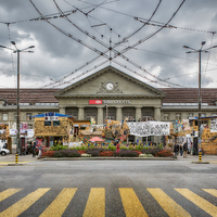 - Prise de vue d'ensemble de la sculpture le dimanche 08 septembre 2019. Sculpture devant la gare de Bienne. Photographie Markus Schweizer.