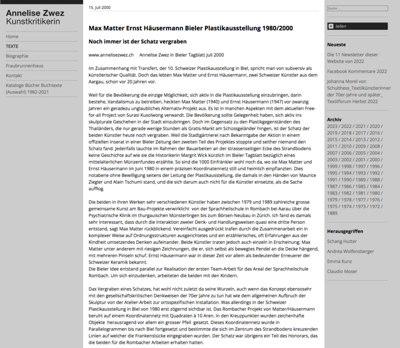 Annelise Zwez, Max Matter Ernst Häusermann Bieler Plastikausstellung 1980/2000