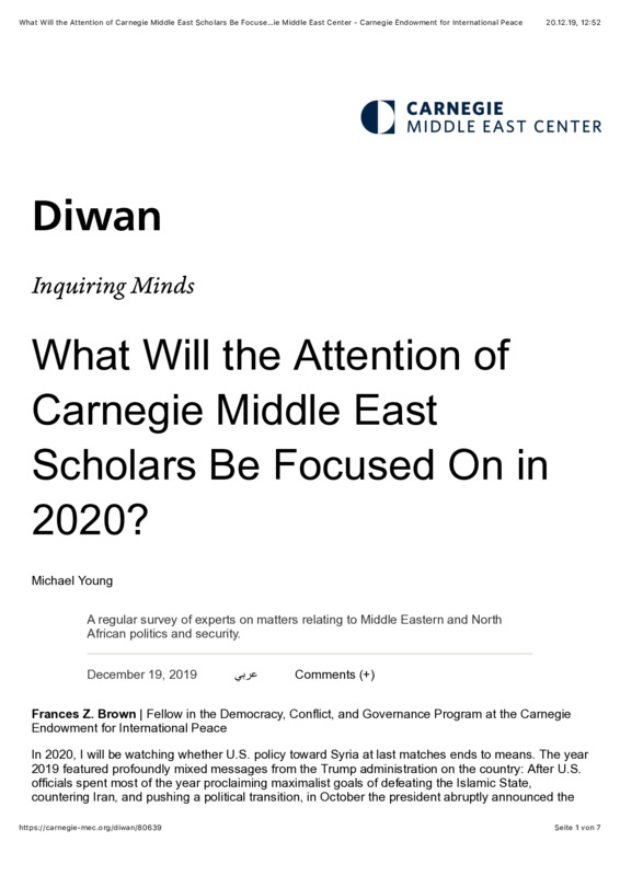 What Will the Attention of Carnegie Middle East Scholars Be Focused On in 2020