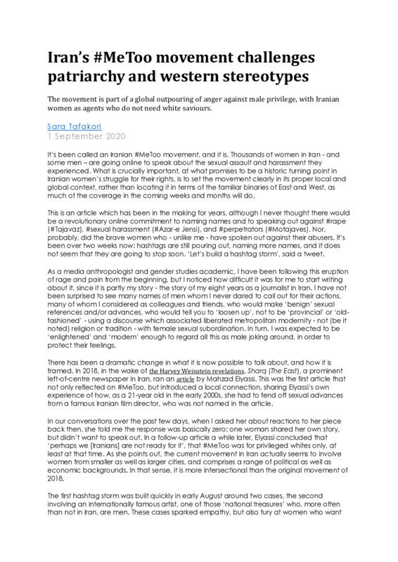 Iran’s #MeToo movement challenges patriarchy and western stereotypes