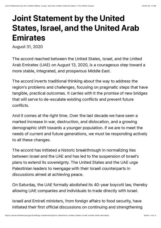 Joint Statement by the United States, Israel, and the United Arab Emirates