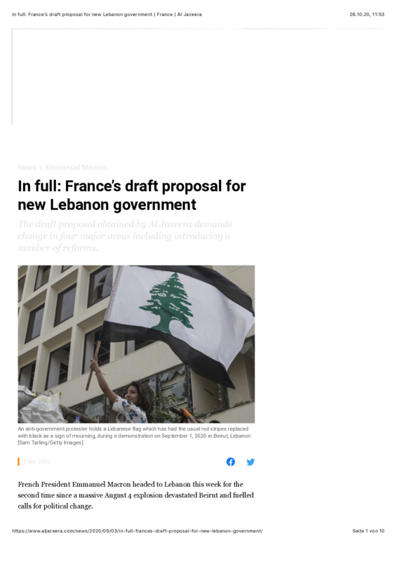 In full: France’s draft proposal for new Lebanon government
