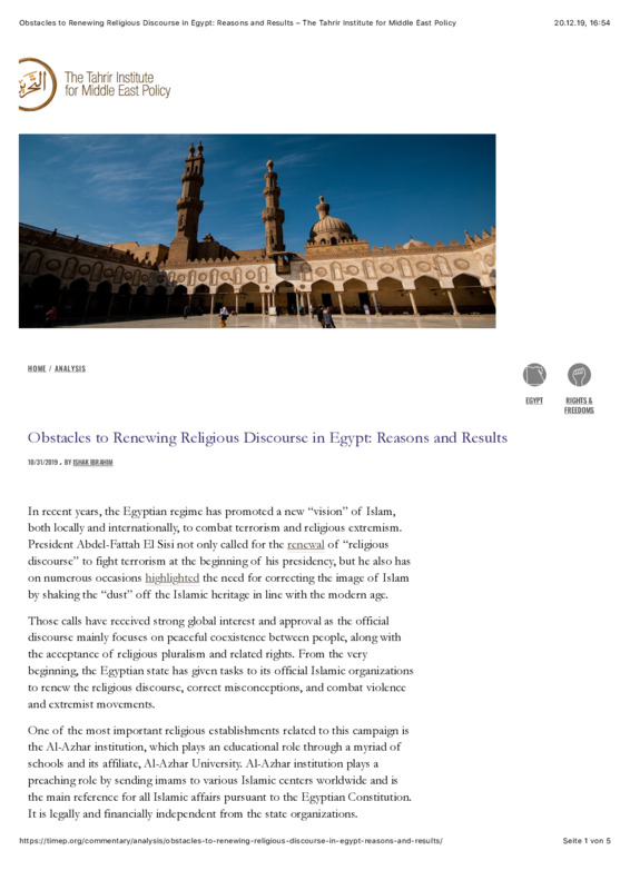 Obstacles to Renewing Religious Discourse in Egypt