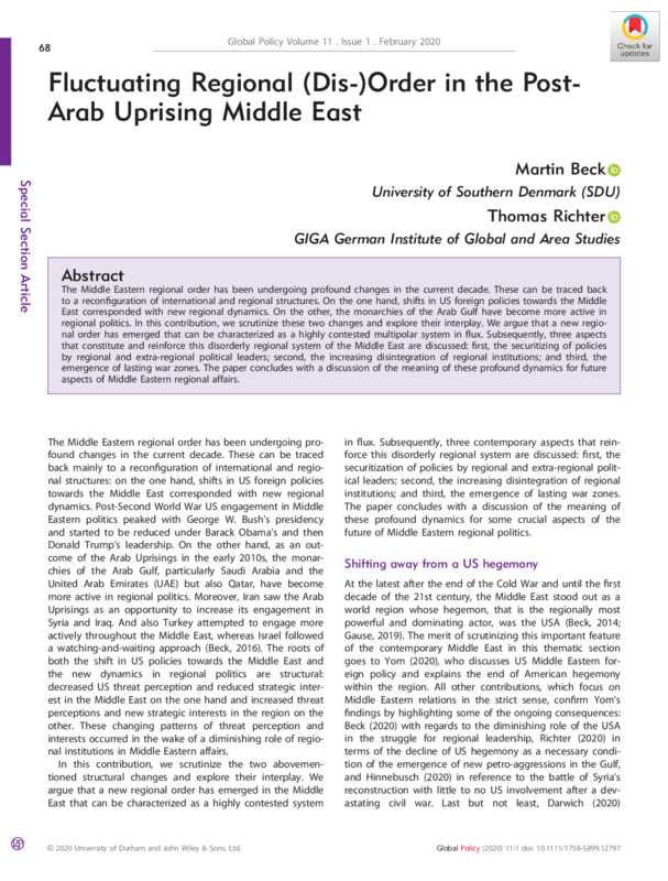 Fluctuating Regional (Dis-)Order in the Post-Arab Uprising Middle East