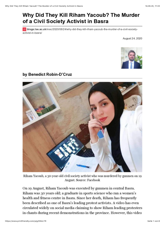 Why Did They Kill Riham Yacoub? The Murder of a Civil Society Activist in Basra