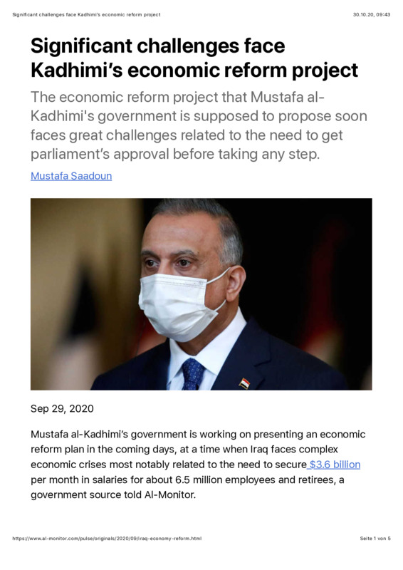 Significant challenges face Kadhimi’s economic reform project