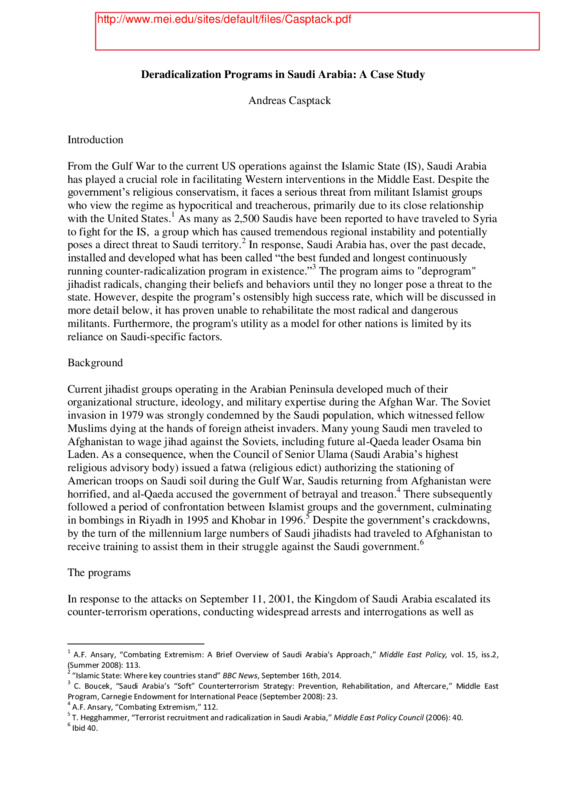 Deradicalization Programs in Saudi Arabia: A Case Study
