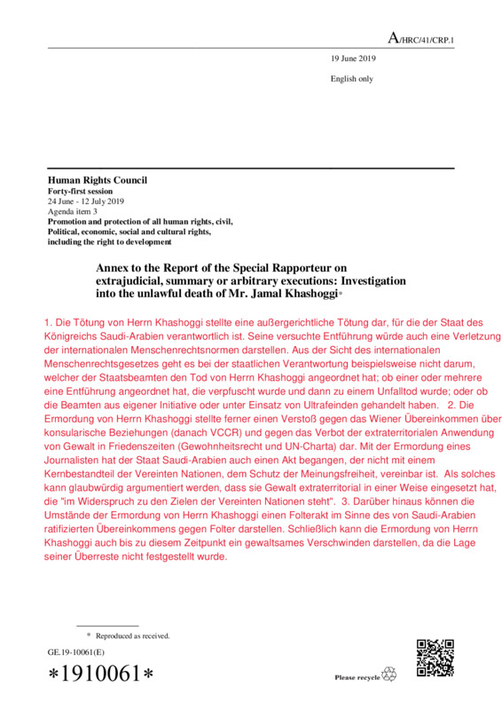 Annex to the Report of the Special Rapporteur on extrajudicial, summary or arbitrary executions: Investigation into the unlawful death of Mr. Jamal Khashoggi*