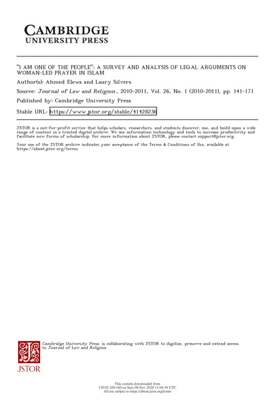 "I AM ONE OF THE PEOPLE": A SURVEY AND ANALYSIS OF LEGAL ARGUMENTS ON WOMAN-LED PRAYER IN ISLAM