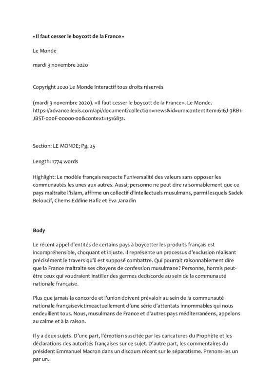 Il faut cesser le boycott de la France