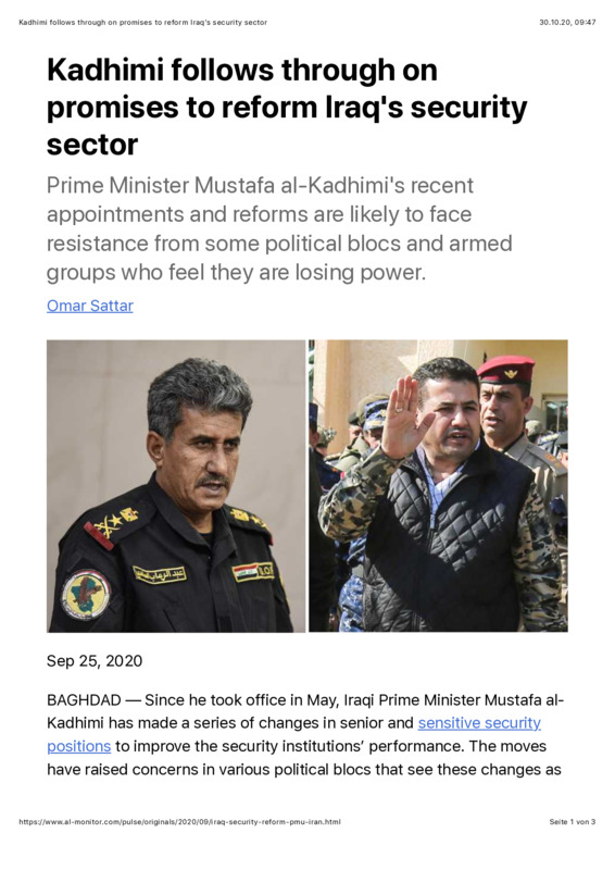 Kadhimi follows through on promises to reform Iraq's security sector
