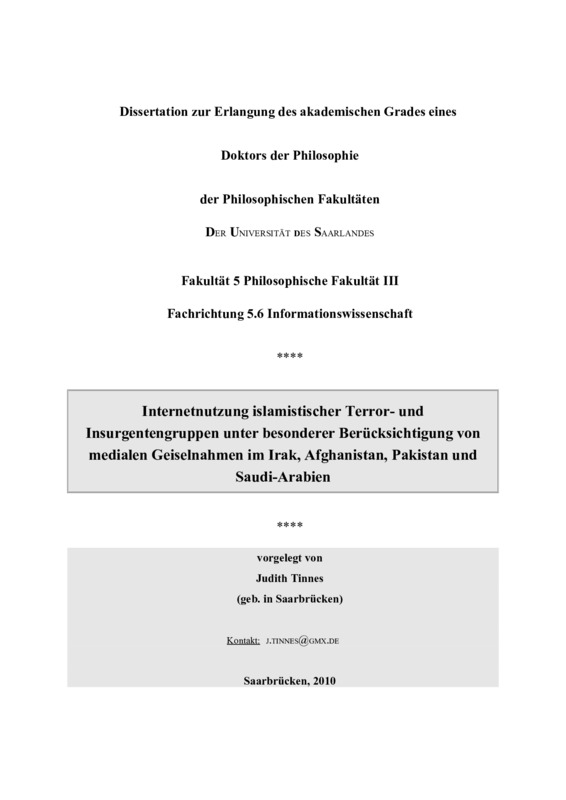 Internetnutzung islamistischer Terror- und Insurgentengruppen unter besonderer Berücksichtigung von medialen Geiselnahmen im Irak, Afghanistan, Pakistan und Saudi-Arabien