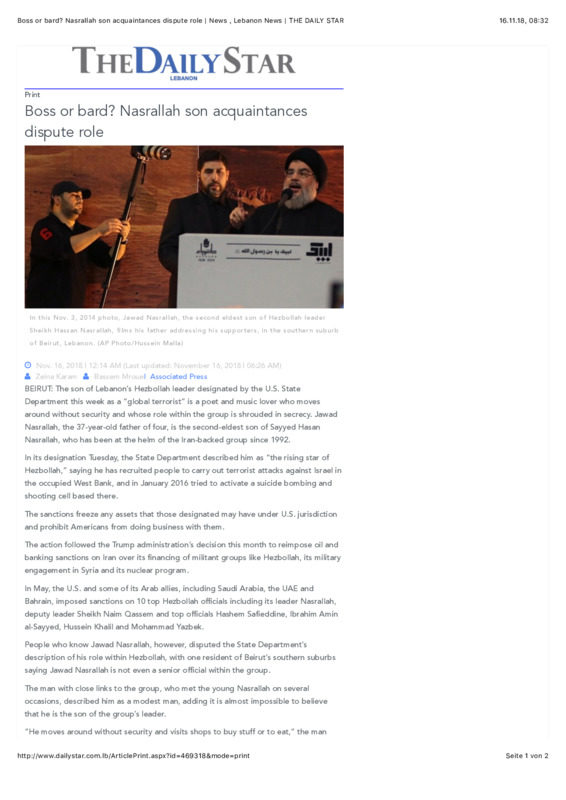 Boss or bard? Nasrallah son acquaintances dispute role