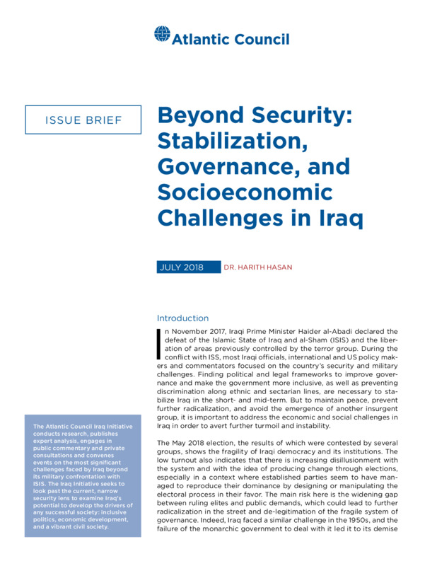Beyond Security: Sabilization, Governance, and Socioeconomic Challenges in Iraq