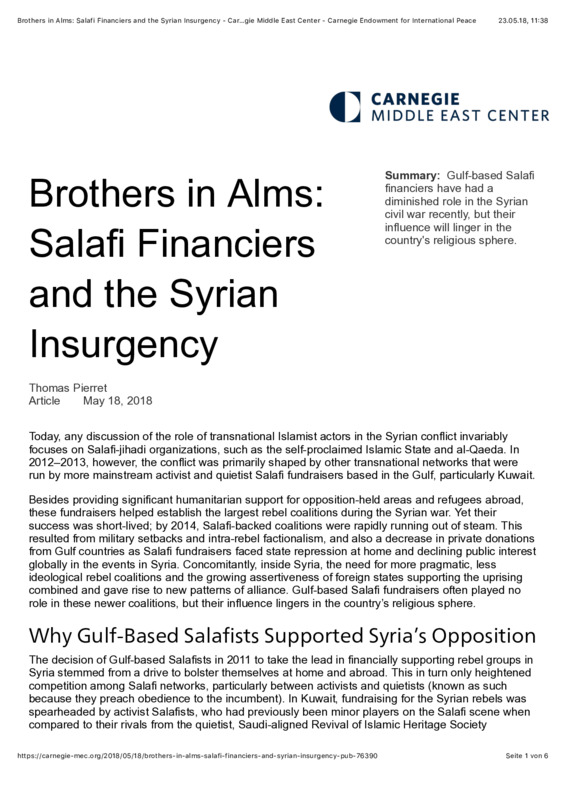 Brothers in Alms: Salafi Financiers and the Syrian Insurgency