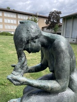 Die Gruppe von Lehrerinnen absolvieren den Parcours Urban Golf am 8. September 2023. Dieser umfasst auch drei Skulpturen, wovon zwei ursprünglich für die SPA realisiert wurden. Die Urban Golf-Abschläge verteilen sich über den Strandboden und entlang der Schüsspromenade. Markiert sind die Abschläge mit einem auf den Boden gesprayten Graffiti. Anbieter ist Tourismus Biel Seeland.