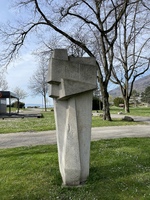 Die Skulptur von Ödön Koch am Strandboden hinter dem Stradcafé, steht geradezu exemplarisch für die kompakte und kubische Formsprache, die Koch nach dem 2. Weltkrieg verwendete.