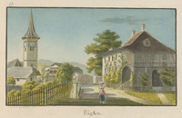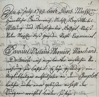 Die Darstellung zeigt eine Szene aus dem Prozess der «Henzi-Verschwörung», die im Jahr 1749 in Bern stattfand. Zu sehen sind die Hauptangeklagten, umgeben von einer aufmerksamen Menge. Diese Verschwörung war ein entscheidender Moment in der politischen Geschichte Berns, da sie die tiefen sozialen Spannungen zwischen dem Patriziat und der breiten Bevölkerung widerspiegelte. Die Hinrichtung der Hauptangeklagten verdeutlichen die repressiven Strukturen der Berner Obrigkeit, das den versuchten Umsturz mit brutaler Gewalt beantwortete. Es ist anzunehmen, dass auch Alexander Ludwig von Wattenwyl auf der Darstellung zu sehen ist.